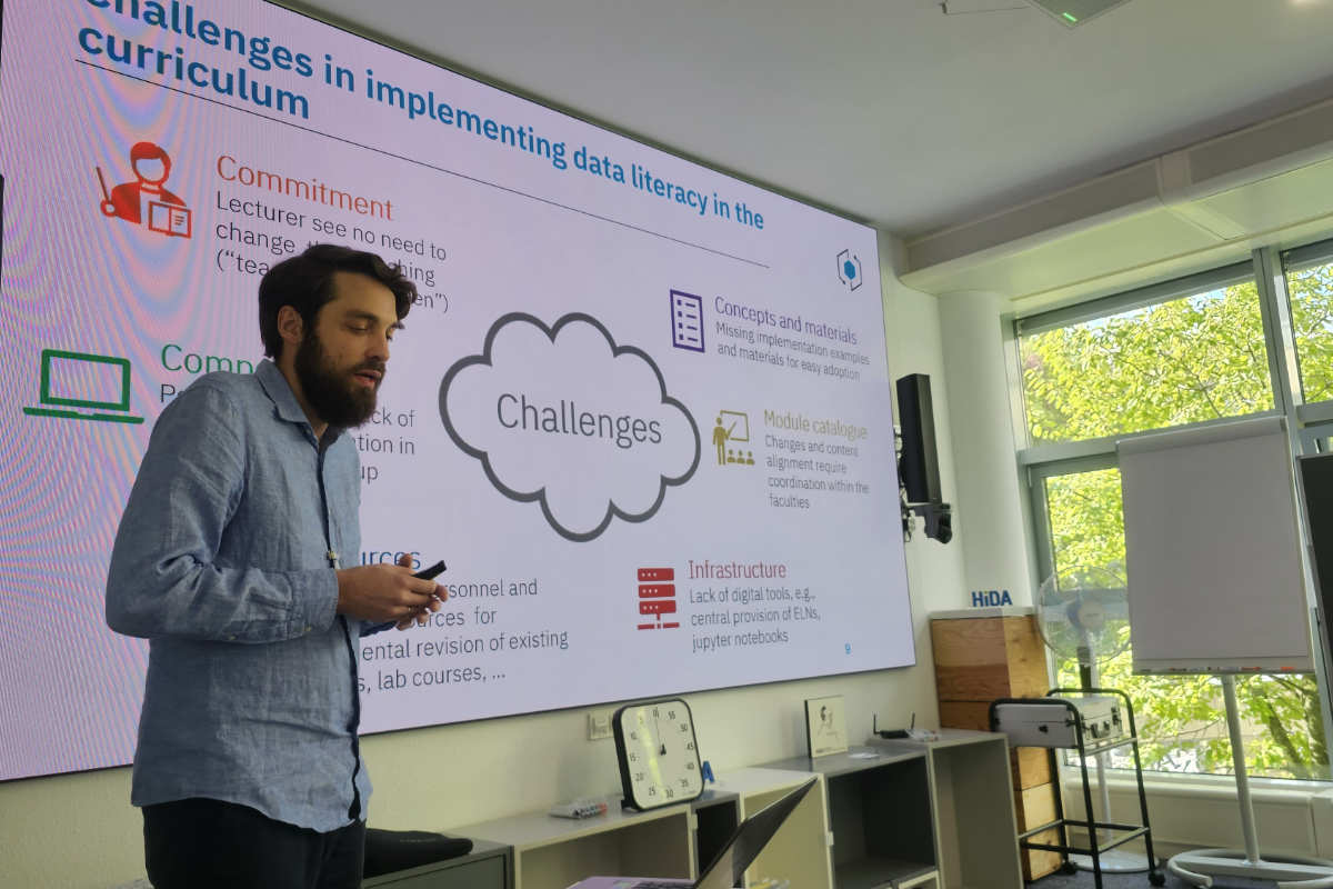Während der Konferenz hatte Jochen Ortmeyer die Gelegenheit, den Ansatz von NFDI4Chem zur Vermittlung von Datenkompetenz vorzustellen. In seinem Vortrag “Data Literacy: How to educate and train the next generation in chemistry and beyond” gab er einen Einblick in unsere Bemühungen, Themen zu Forschungsdaten in den Chemieunterricht zu integrieren. Darüber hinaus wurde dem Publikum das DALIA-Portal vorgestellt und gezeigt, wie es in der Chemie und darüber hinaus genutzt werden kann, um Bildungsressourcen zu Datenkompetenz zu finden. In der Diskussion nach dem Vortrag waren sich die Teilnehmenden einig, dass die Vermittlung von Datenkompetenz schon ganz früh beginnen sollte und nicht auf die Chemie beschränkt ist.