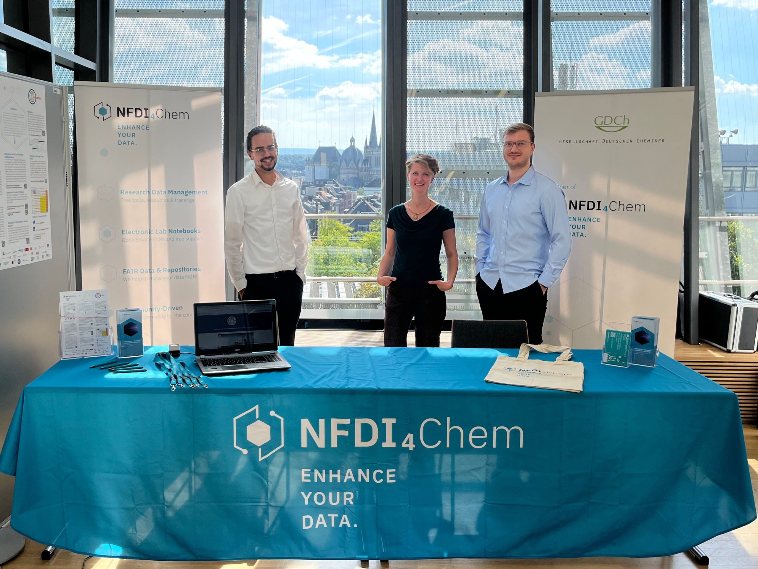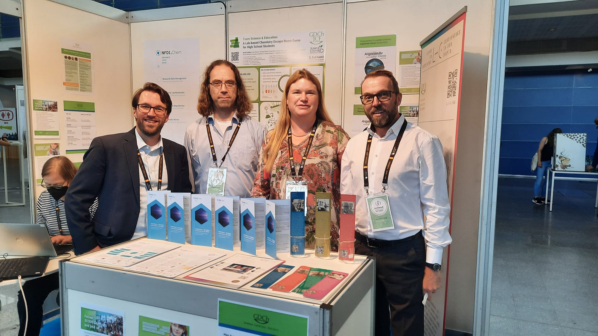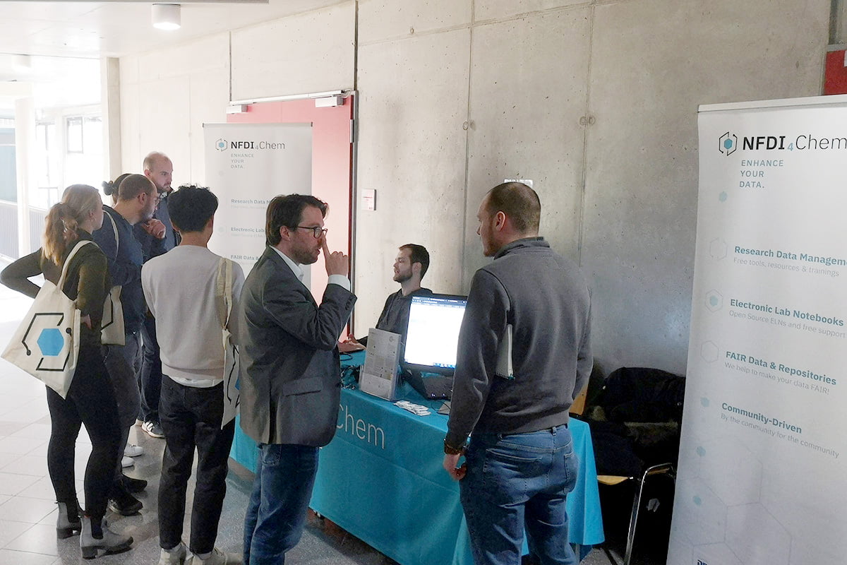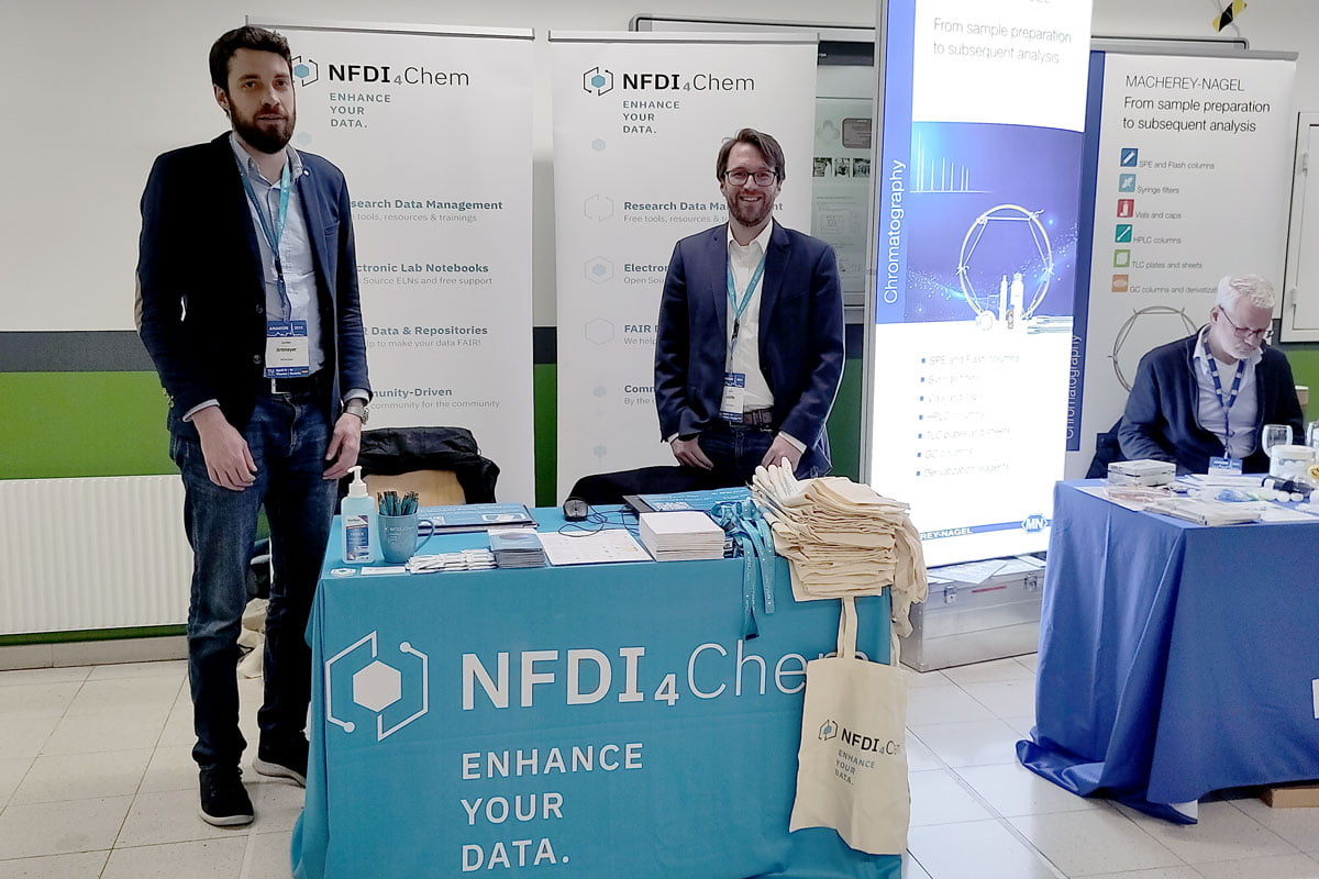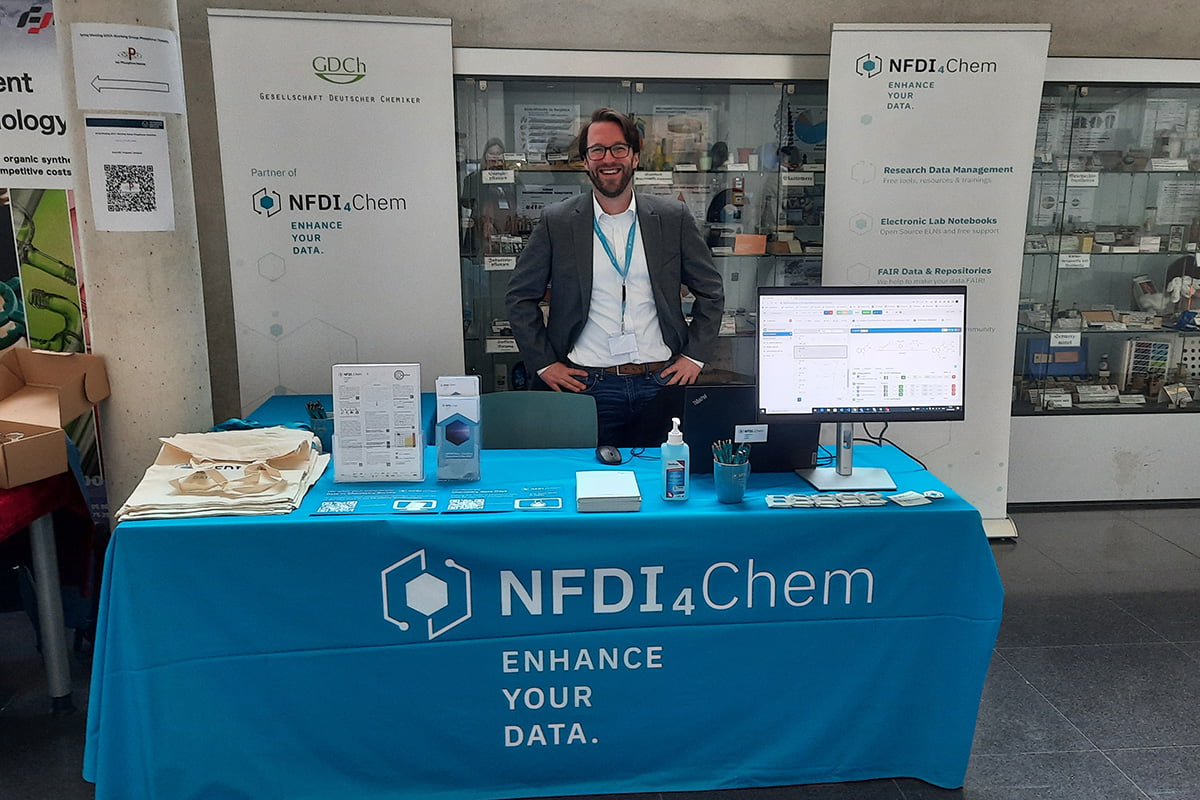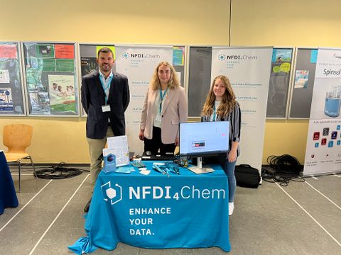 Das NFDI4Chem-Team war auf zahlreichen Konferenzen vertreten. Mit Konferenzständen, Vorträgen und Postern möchten wir die chemische Gemeinschaft das ganze Jahr über über die neuesten Entwicklungen bei elektronischen Labornotizbüchern, Repositorien und neuen Tools für ein intelligentes Labor informieren.