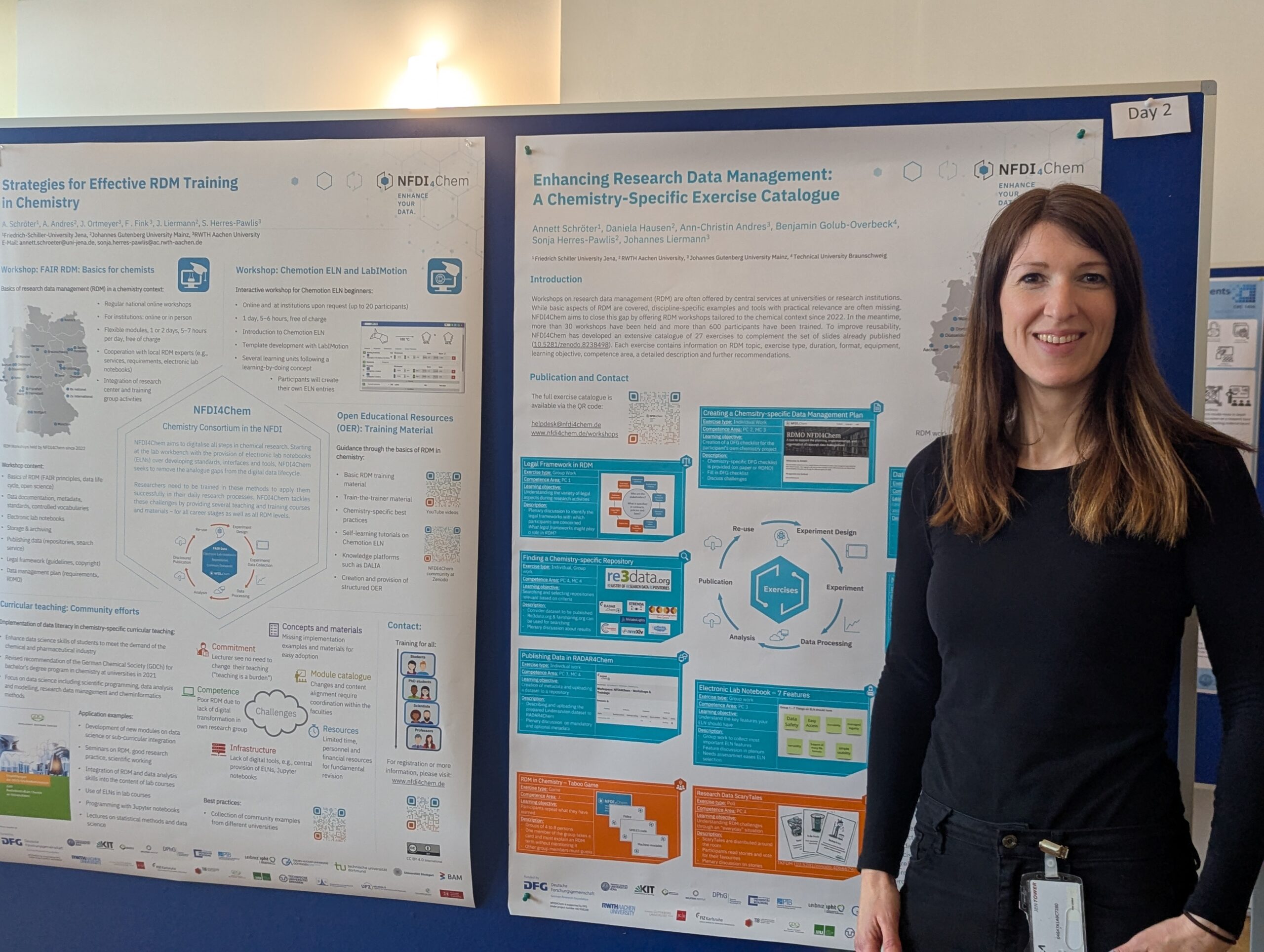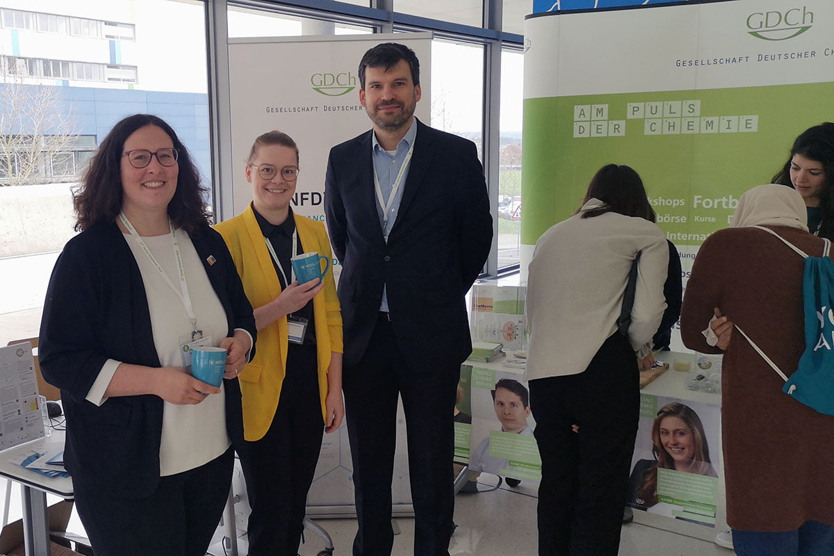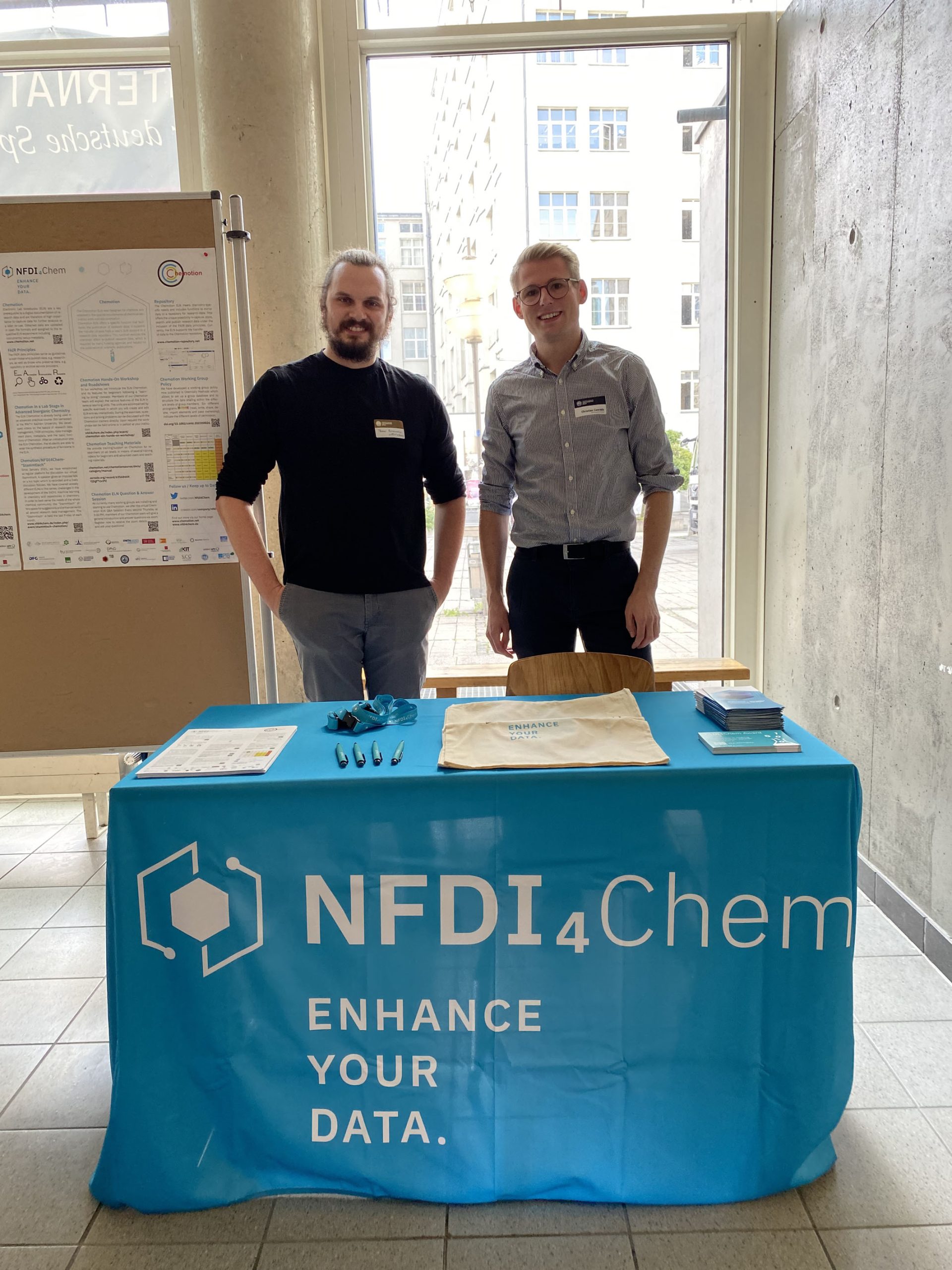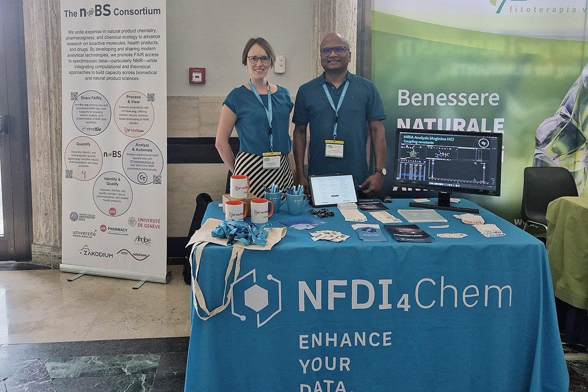 Das NFDI4Chem-Team war auf zahlreichen Konferenzen vertreten. Mit Konferenzständen, Vorträgen und Postern möchten wir die chemische Gemeinschaft das ganze Jahr über über die neuesten Entwicklungen bei elektronischen Labornotizbüchern, Repositorien und neuen Tools für ein intelligentes Labor informieren.